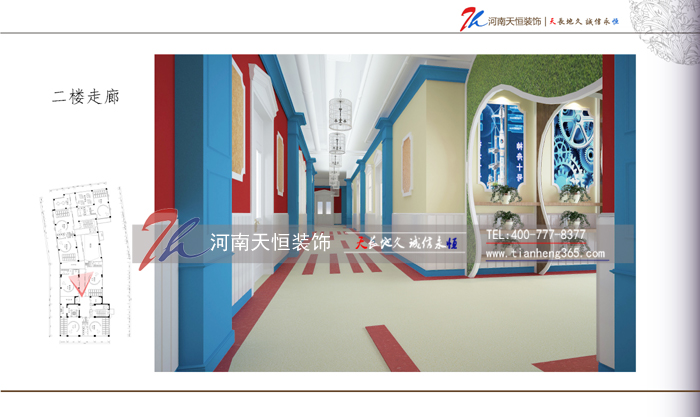 從理性的角度設(shè)計出發(fā),以孩子的成長為中心,最大可能地去創(chuàng)造一個屬于小朋友的國度。整體色彩運(yùn)用靈活多變,環(huán)境明亮、輕松、愉悅。優(yōu)美的弧線條和塊狀顏色的融合,干凈而不失童趣。開放式布局以大廳為能量匯集地,延伸到各個功能部室。公共區(qū)角空間的設(shè)施、器材上采用了大量的軟包。去除尖銳菱角等安全隱患。并且在燈光的應(yīng)用上采用明亮的暖色調(diào)燈光,和空間的整體色調(diào)融合在一起。 工程名稱:鄭州愛得賽國際幼兒園 建筑面積:2000平米 項目地址:鄭州市東風(fēng)南路創(chuàng)業(yè)路交叉口 裝修單位:河南天恒裝飾工程有限公司 主案設(shè)計:王延寬 裝修熱線:400-777-8377 鄭州愛得賽國際幼兒園 鄭州愛得賽國際幼兒園 鄭州愛得賽國際幼兒園 鄭州愛得賽國際幼兒園